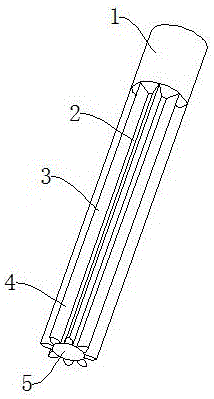如圖1和圖2所示,齒條4成型于芯桿5以及連接桿1上,齒條4為實現該齒輪轉動的主要結構。